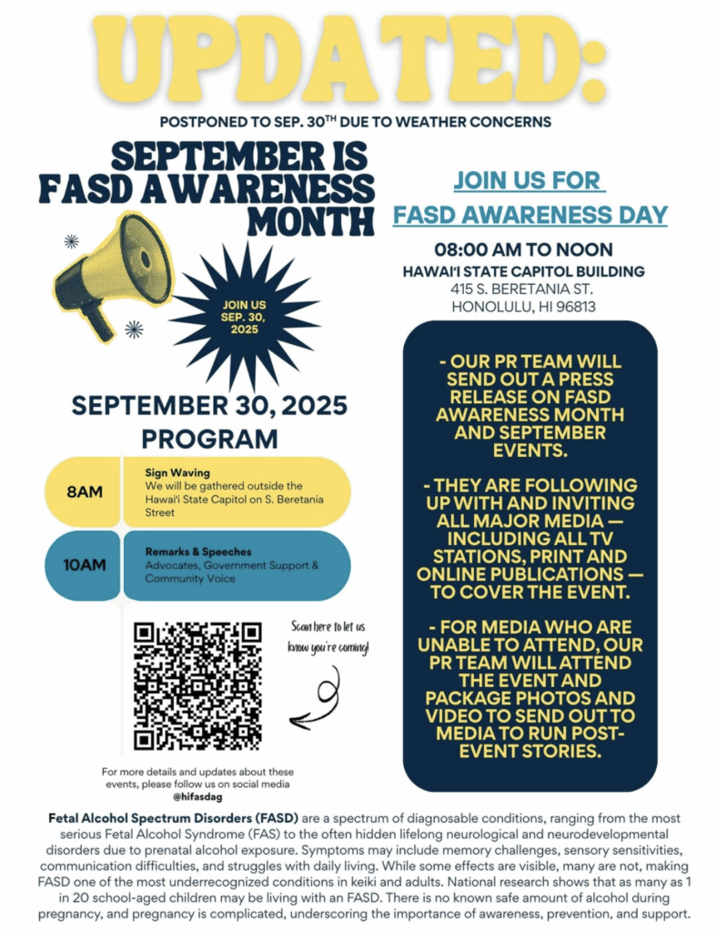 The Hawaiʻi FASD Action Group is a nonprofit organization dedicated to raising awareness, advancing education, and promoting research on Fetal Alcohol Spectrum Disorders (FASD) in Hawaiʻi.
